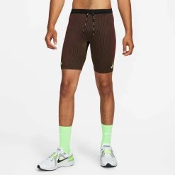 The Nike Dri-Fit Aeroswift ½ length racing tights in the Black/Oxen Brown/Ironstone/Ghost Green colourway features innovative technology combined with lightweight materials. This tight is all about speed with a smooth, hugging fit that lets you move freely during a running motion.